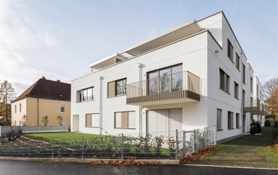 3 kompakte Wohnbaukörper.